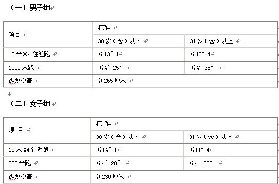 2013年陕西省录用人民警察体能测评项目和标准如下: