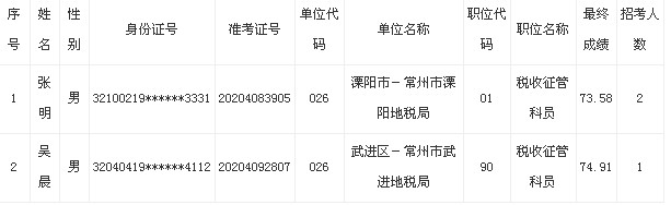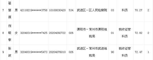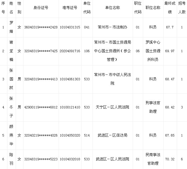 2013年江苏常州公务员(除警察职位)体检结果公示