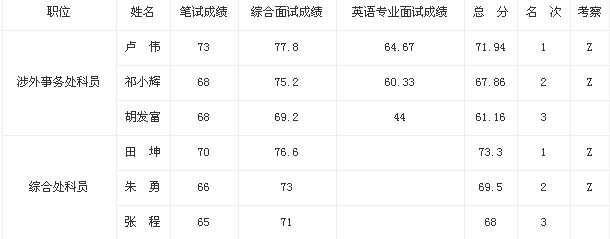 宿迁市人民政府外事办公室公开选调公务员笔试、面试工作已经结束,现将总成绩予以公布!