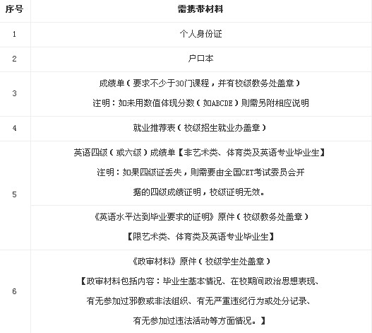 参加报名人员按照“生源”不同,所需材料也不同。具体所需携带材料如下表: