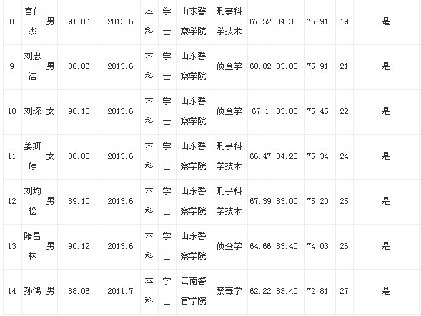 2013年诸城市公安机关招聘事业单位工作人员体检名单公示如下: