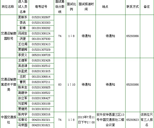 按照2013年中央单位和北京市市级单位接收安置军转干部笔试试卷成绩排序,现将进入我部接收安置军队转业干部岗位面试有关问题公告如下: