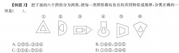 解析:本题考查的是图形的对称问题。根据各图中对称轴的方向可分为两类。在①④⑥中,对称轴 为纵向;在②③⑤中,对称轴为横向。故选B。