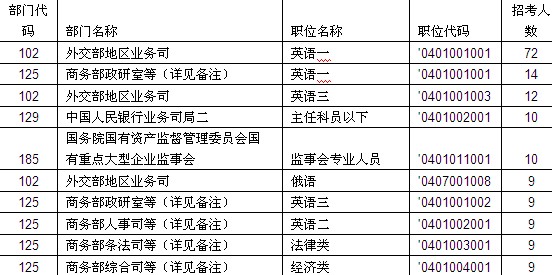 2014年国家公务员考试十大热门职位(中央国家行政机关)