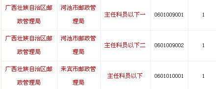2014年国家公务员考试职位表:广西邮政管理局