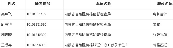 公示期间如对上述人员有异议,请向内蒙古自治区公务员局考试录用处反映。