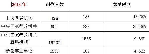 一、2014年国考职位党员限制情况