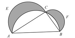 68. 如图,在以AB为直径的半圆上取一点C,分别以AC和BC为直径在△ABC外作半圆AEC和BFC。当C点在什么位置时,图中两个弯月形(阴影部分)AEC和BFC的面积和最大?( )