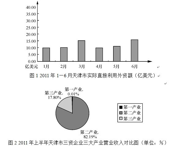 D. 2011年上半年天津市三资企业实现第三产业营业收入689.4亿元?