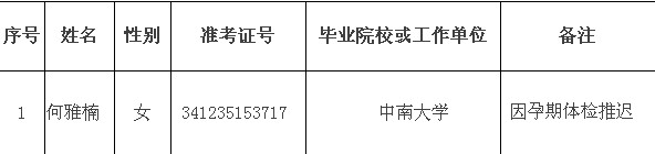 根据中组部、人力资源社会保障部、国家公务员局关于中央机关及其直属机构2013年度考试录用公务员工作的有关规定和要求,经过笔试、面试、体检、考察等程序,福建省国家税务局系统拟补录何雅楠同志为公务员,现予以公示。