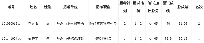 2013年辽宁省丹东市各级机关公务员拟录用名单公告(第四批)