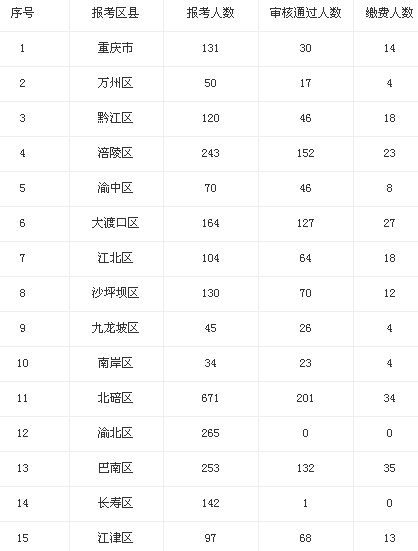 摘要 2014年重庆选调生考试报名统计(截止12月7日17:00)