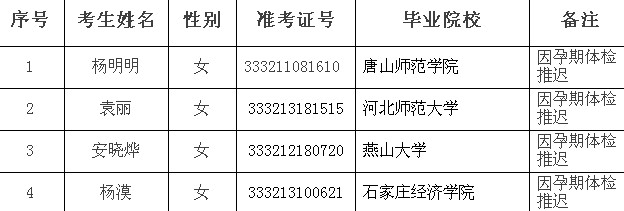 根据中共中央组织部、人力资源和社会保障部、国家公务员局关于中央机关及其直属机构2013年度考试录用公务员有关工作要求,经过笔试、面试、体检、考察等程序,河北省国家税务局系统拟补录杨明明等4名同志为公务员,现将拟录用人员名单予以公示。
