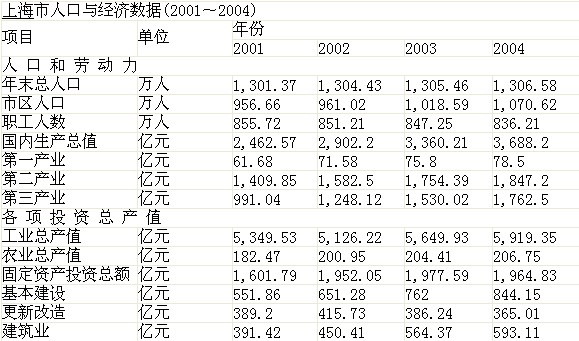 A. 2001~2004年,上海市工业总产值并不都呈递增趋势