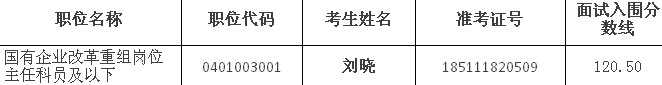 因部分考生放弃面试资格,根据公务员招考有关规定,拟在公共科目笔试合格的考生中,按照笔试成绩从高到低的顺序,递补以下考生为面试人选:
