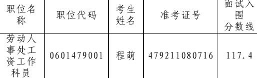因部分考生放弃面试资格,根据公务员招考有关规定,在公共科目笔试合格的考生中,按照笔试成绩从高到低的顺序,递补以下考生为面试人选: