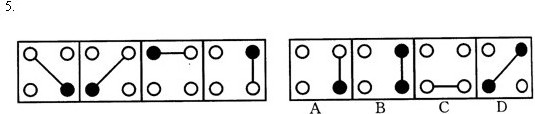 5.A【解析】按仅有一个黑点且顺时针旋转的规律,选A。