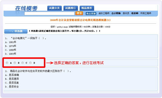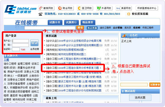 一、 选择测试试卷(收费试卷要先登陆在线模考平台购买试卷)