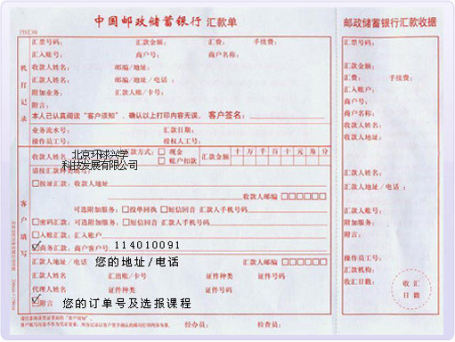 汇款单附言处请写明:1.报名后产生的用户名(或者订单号) 2.您所选报的课程