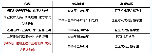 需领取职称外语等级考试成绩单、全国勘察设计注册工程师基础考试成绩合格通知单、专业技术人员计算机应用能力考试合格证书、一级建造师专业类别考试合格证明、二级建造师增报专业合格证明的考生,凭考生有效居民身份证原件和准考证到广西人事考试院办理领取手续。