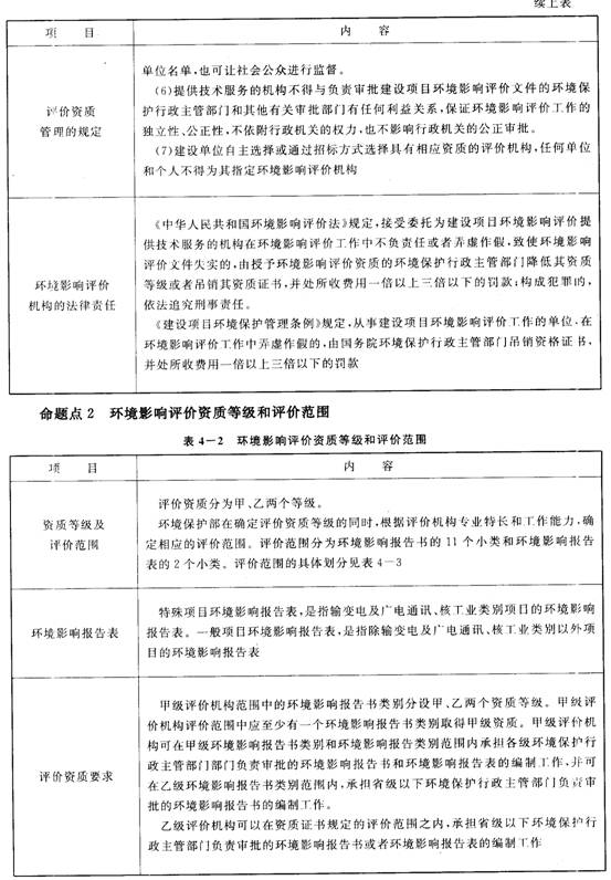 命题点解读命题点1环境影响评价资质管理的法律法规规定表4―1环境影响评价资质管理的法律法规规定