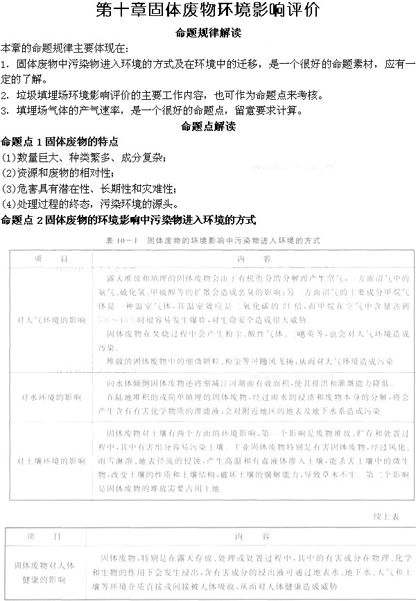 2012年环评《技术方法》第十章命题解读-固体废物环境影响评价