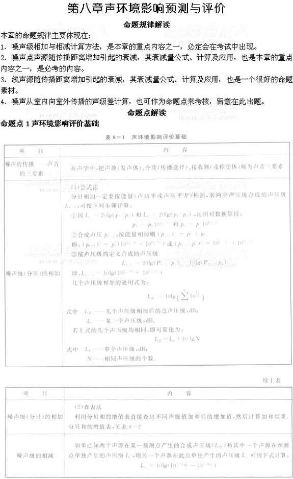 2012年环评《技术方法》第八章命题解读-声环境影响预测与评价