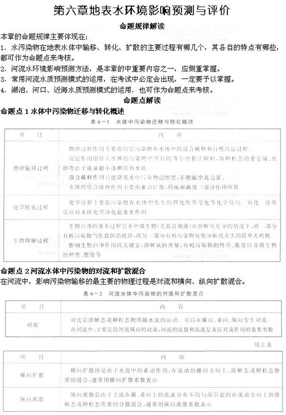 2012年环评《技术方法》第六章命题解读-地表水环境影响预测与评价