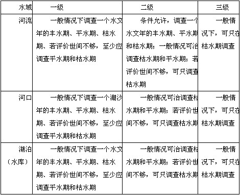 ③当被调查的范围内面源污染严重,丰水期水质劣于枯水期时,一、二级评价的各类水域应调查丰水期,若时间允许,三级也应调查丰水期。