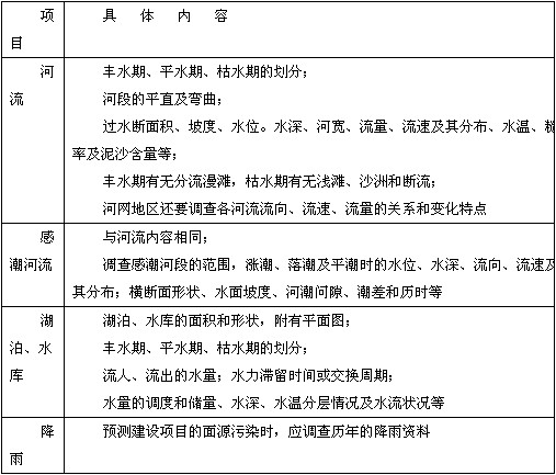 表4-8 水文调查与水文测量内容