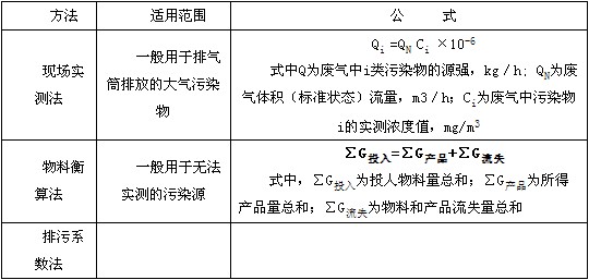 大气污染源调查方法一般有三种:现场实测法、物料衡算法、排污系数法,见表4-4。