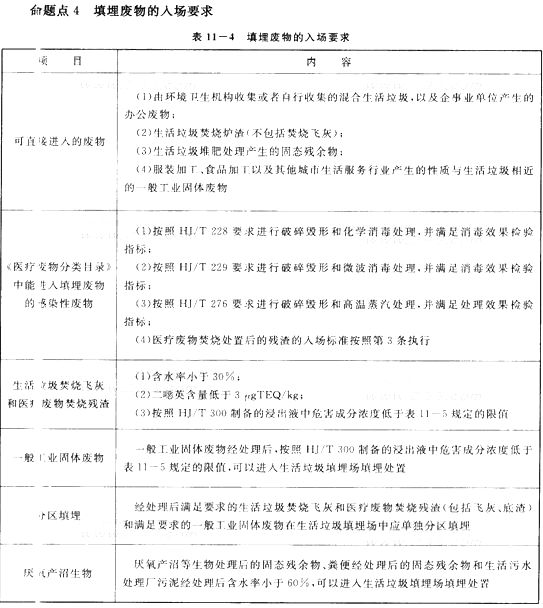 4.生活垃圾填埋场选址的环境保护要求及填埋废物的入场要求是本章的重点内容之一,在考试中必定会出现。