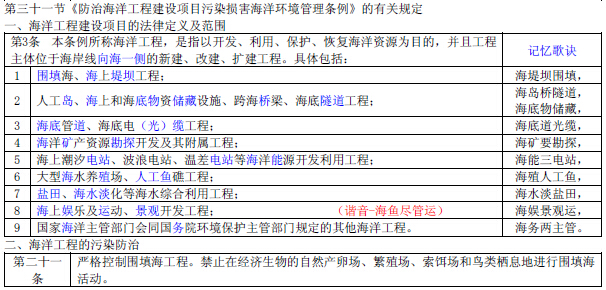 2015年环境影响评价师《法律法规》记忆歌诀 第六章31