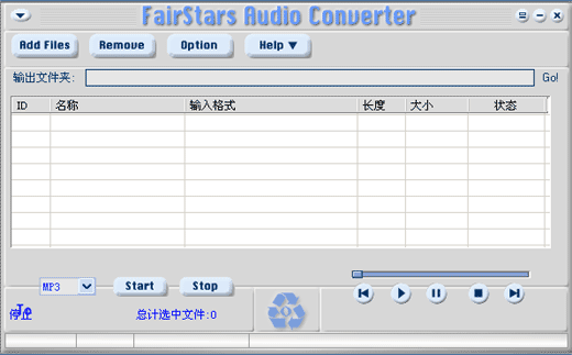 2、软件安装完毕后,在程序菜单或桌面上双击"FairStars Audio Converter"快捷图标,软件正常运行后出现使用界面。见下图: