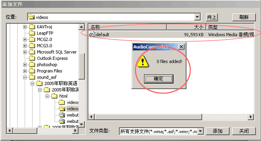 注意:在“添加文件”时,选择了某一个文件后,如果出现了象下图的“0