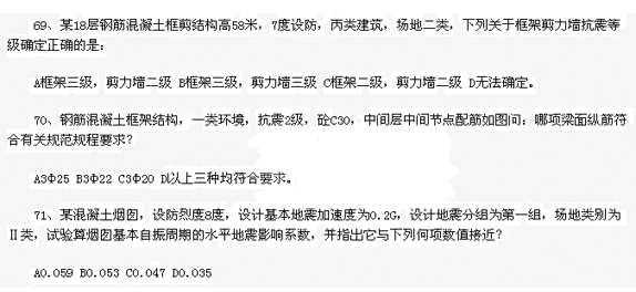 65、假设该建筑物在类场地,其角柱纵向钢筋的配置如图,试问:下列在柱中配的纵向钢筋面积,其中何项最为接近规范、规程?