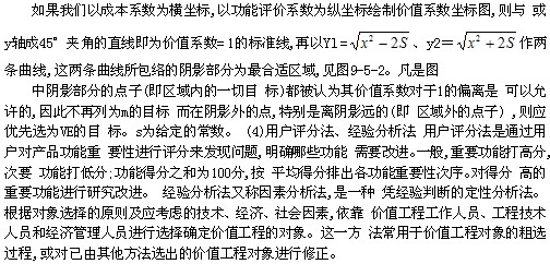 最合适区域法也是一种通过求价值系数来选择VE目标的方法。选择m目标时提出 选用价值系数的最合适区域。方法的思路是这样:价值系数相同的对象,由于各自的系数与功能评价系数的绝对值不同,因而对产品价值的实际影响有很大差异。在选择 耐,应优先选择对产品实际影响大的对象,至于对产品影响小的,则可根据必要与可 决定选择与否。