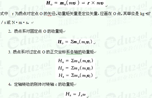 动量矩是某瞬时,质点或质点系绕某点或某轴转动时机械运动强弱的一种度量。其数学表达式分述如下。