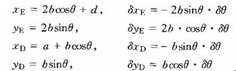 (4)将各主动力作用点的坐标用广义坐标θ表示,并对各坐标进行变分运算,找出各主动力作用点坐标变分与δθ间关系。