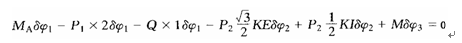 这里所计算的虚功,全用力矩之功来计算。为求MA需找出虚位移δφ2、δφ3与δφ1的关系。