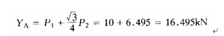 [例4—3—17] 组合梁结构受荷载情况如图4—3—47所示。已知P1=10kN,P2=15kN,M=40kN·m,q=1.6kN/m。试求固定端A的约束反力。