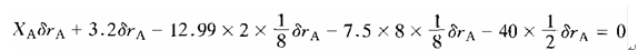 最后,解除支座A的水平约束,代以相对应的约束反力XA,并将该力视为主动力;将支座A改造为如图4—3—43(d)所示,此支座表示既不能铅垂移动,又不能转动。