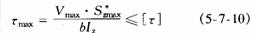 式中 Vmax为全梁的最大剪力; 为中性轴一边的横截面面积对中性轴的静矩;b为 横截面在中性轴处的宽度;Iz为整个横截面对中性轴的惯矩。