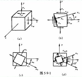 平面应力状态通常用单元体中主应力为零的那个主平面的正投影表示如图5—9—1所示。