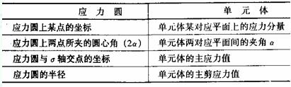 在平面应力状态σx、σy、τxy下,任意斜截面上的应力σσ与τσ间的关系式为一个圆方程。