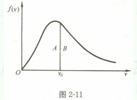 14如图2-11表示气体分子速率分布曲线, 图中A、B两部分面积相等(以f(v0)为界) ,则它们表示的物理意义是:(D)