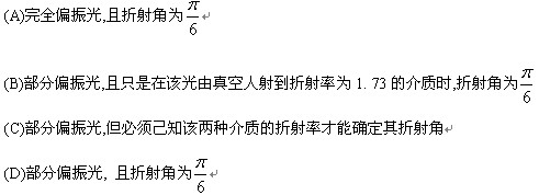 8.在两种介质的交界面上,若自然光以亏的角度入射,其反射光为完全偏振光, 由此可知其折射光为(D)。