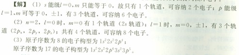 解题思路:首先按照量子数之间关系算出各能级的轨道数目,然后按照每个轨道内可 填充自旋方向相反的2个电子确定可容纳的电子数;按照能级顺序图排列核外电子。