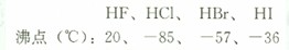 因HF分子间存在氢键,其熔点和沸点比同类型的氢化物要高,出现反常现象。