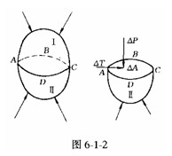 设在脱离体表面上任一点取一微小面积ΔA (图6—1—2),所受压力和切力分别为ΔP和ΔT,则该点的压强p 和切应力τ为: